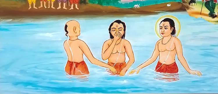 Roaming thus, Nilkantha Varni arrived in a city. Those were the rainy days. Varni encamped on a river bank. There he began to enchant loudly the verses [chopai] from the Ramayan written by Tulsidas [Rama Charit Manas]. This loud enchantment of the Ramayan mixed with the loud thunders of the rainy clouds...