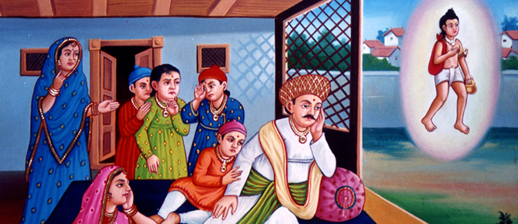 Hours passed but Ghanshyam could not be seen. Ghanshyam’s friends began to search for Ghanshyam. Every nook and corner of all the temples of the village was searched. The distant search on the river-bank was conducted. But alas! Ghanshyam was not found any where. There was no limit to the elder brother’s sorrow. He wept and wailed: “O Ghanshyam, come back. I promise never to scold you.”