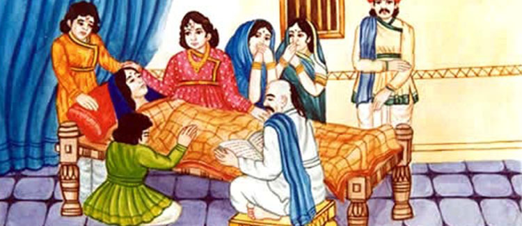 Dharmdev was staying along with his family in Ayodhyapuri. During this stay Bhaktimata fell ill. She said, “Take me back to Chhappaiya.” Everyone came back to Chhappiya with Bhaktimata. She said to young Ghanshyam, “I want to leave my body listening to a few words from your own mouth. O! Tell me about knowledge (Gyan) and devotion (Bhakti). ...